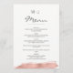 Modern Rose Gold Brushstroke Wedding Menu Card