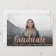 Modern rose gold foil confetti and geometric frame border minimalist photo graduation with trendy script calligraphy, add 5 of your favourite photos in a grid collage style. Landscape layout