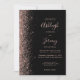 The left-hand edge of this elegant modern wedding invitation features a rose gold faux glitter design. The customisable text combines pale rose pink handwriting, copperplate and italic fonts on a black background. The reverse side features a matching black and rose gold glitter design.