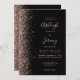 Modern Rose Gold Glitter Edge Black Wedding Invitation