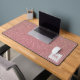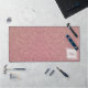 This stylish desk mat features a personalised frame design with white marble, faux rose gold glitter texture, and a custom name and monogram in pink.