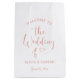 Modern rose gold and white wedding welcome gift bags feature a stylish typography design with chic calligraphy script and a heart accent. The simple and elegant custom text that can be personalised with the names of the couple and their wedding date.