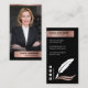 This modern and elegant business card design is perfect for any loan signing agent looking to project an image of professionalism and trustworthiness. Featuring a sleek black and rose gold colour scheme, a professional photo, and a stylish feather pen logo, this card is sure to leave a lasting impression on clients.