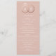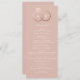 Clean and modern text is easily personalised on this chic, skinny format, wedding program. White type feels sophisticated and feminine when accented with a faux rose gold foil graphic of interlocked wedding rings on a background of dusty beige pink.