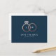 Modern Rose Gold Rings Monogram Navy Save the Date Postcard