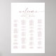 This modern rose gold script alphabetical seating chart poster is perfect for a minimalist wedding. This sign can be used to organise your guests alphabetically or by table number by changing the names of the headings. The simple blush pink rose gold colour design features unique industrial lettering typography with modern boho style. Customisable in any colour. Keep the design minimal and elegant, as is, or personalise it by adding your own graphics and artwork. This wedding poster includes enough room for up to about 120 guests. Make room for more (or less) guests by clicking the "customise" button and decrease or increase the size of the font. In addition to the placement of each guest, personalise this sign with the names of the bride and groom and the wedding date.