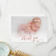Modern Rose Gold Script New Baby Photo Thank You