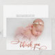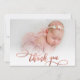 Modern Rose Gold Script New Baby Photo Thank You Card