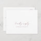 This modern rose gold script song request RSVP postcard is perfect for a minimalist wedding. The simple blush pink rose gold colour design features unique industrial lettering typography with modern boho style. Customisable in any colour. Keep the design minimal and elegant, as is, or personalise it by adding your own graphics and artwork. Build your wedding guest list and your dance floor song list all at once! This wedding response postcard conveniently asks guests if they will be able to attend your wedding, and also what song will get them to dance.