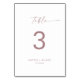 This modern rose gold script table number is perfect for a minimalist wedding. The simple blush pink rose gold colour design features unique industrial lettering typography with modern boho style. Customisable in any colour. Keep the design minimal and elegant, as is, or personalise it by adding your own graphics and artwork. The card prints on the front and back (double-sided). Items are printed exactly as they appear on your screen when you add to cart, so personalise and add each table number that you need to your cart individually.