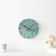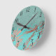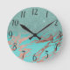Modern Rose Gold Teal Marble Glitter Gradient Round Clock
