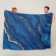 Modern Royal Blue Gold Marble Collection Fleece Blanket