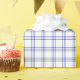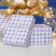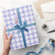 A wrapping paper designed with a modern royal blue plaid pattern on white. Customise the white background among other options.
