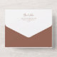 A beautiful typography based wedding invitation featuring your names in modern earth tone rust handwritten script lettering at the top. Personalise with your wedding details in classic serif lettering aligned at the lower right, and add a photo at the top. Attached RSVP card and folding style makes this all-in-one invitation an appealing choice.