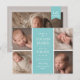 Modern birth announcement with 4 photos on the front and one on the back. All the colours can be customised. It can be personalised with your own message and baby stats.