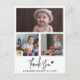 Express your gratitude in style with our Modern & Rustic Baby Shower Thank You Photo Card, a timeless keepsake to cherish. This beautifully designed card features three customisable baby photos, elegantly framed within a thin white border on a clean white background. A large horizontal photo sits at the top, with two smaller images arranged below—perfect for showcasing your little one’s sweetest moments. Below the photos, "Thank You" is written in a modern handwritten script, adding a personal and heartfelt touch, followed by your baby’s name and date of birth in rustic lettering for a warm, charming feel. The back of the card allows for a fully customisable thank you message, so you can express your appreciation in your own words. This card blends modern minimalism with rustic charm, creating a meaningful and stylish way to thank loved ones for their support