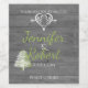 This fun design, called Modern Rustic Barn Wood Wedding, has a washed out grey barn wood pattern background. There is a white scroll calligraphy style design at the top and bottom and a pretty filigree style heart with an arrow separating the bride and grooms' names. A bit lower to the left side there is a tree graphic in white and celery green. The text is in white and celery or lime green as well to really pop off the invitation. Perfect for your rustic country western or outdoor wedding or event. This set has invitations, save the date cards, response cards, thank you cards, table number tent cards, envelope seals, wine labels, binders, return address labels and many more day-of wedding stationery pieces, favours, and gifts available. Use the envelope seal stickers for any of your DIY gifts - these are available in both large and small sizes! All elements are printed on our high quality products, they do not include any real gold, jewels, embossing, or other textile elements. All designs are copyright Noteable Expressions, Inc. All rights reserved.