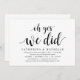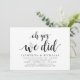 Modern Rustic, Black Script themed invitation card (with card title: oh yes, we did). It is perfect for your wedding elopement reception / post wedding celebration party. Add your details in matching black font / lettering.