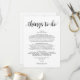 Modern Rustic Wedding Things to do and Itinerary Card, in Black font.