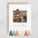 Send greetings this season with this natural earthy holiday card featuring a row of christmas trees, a natural wood finish back and your favourite photo.