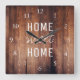 Modern rustic dark barn wood Home sweet home Square Wall Clock