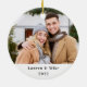 Custom-designed Christmas ornament featuring "first Christmas in our new home" rustic modern design with personalised photo on the back.