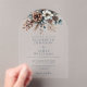 This modern, elegant watercolor rustic floral pinecone wedding transparent acrylic arch invitation can be personalised with your information and wedding details in stylish typography. Designed by Thisisnotme©