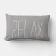 Modern rustic light grey faux burlap texture Relax script pillow.