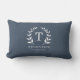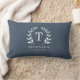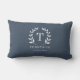 Modern Rustic Monogram Wreath Family Name Dusty Blue Navy Lumbar Pillow