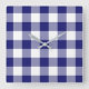 Modern Rustic Navy Blue Plaid Pattern Square Wall Clock