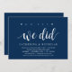 Modern Rustic, Navy Blue Script themed invitation card (with card title: oh yes, we did). It is perfect for your wedding elopement reception / post wedding celebration party. Add your details in matching black font / lettering.