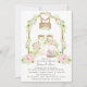 Modern Rustic Outdoor Watercolor Floral Wedding Invitations features a stylish watercolor wedding arch with heart and a table with chairs accented with pink, white and green flowers on a white background. Add your custom QR code on the reverse for your wedding website. Personalised by editing the text in the text boxes provided. Designed by ©Evco Studio www.zazzle.com/store/evcostudio