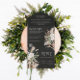 Budget modern black rustic pampas eucalyptus wedding all in one QR code invite, reply card with space for qr code and website information.