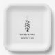 Modern Rustic wedding reception paper plate, with a simple pine tree and customisable typography design. A casual addition to your wedding reception party supplies.