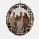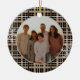 Elegant modern country rustic black and tan plaid flannel design with a custom photo area, and customisable family. name and year designed for a round ornament shape!