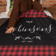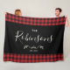 Custom family fleece blanket with your family name in script calligraphy in this modern rustic red buffalo plaid design.