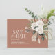 Modern barn farmhouse rustic botanical bohemian natural pampas grass and eucalyptus botanical wedding save the date invitation. Classy sage green, terracotta, black and natural colorway. Space for website and QR code on the back.