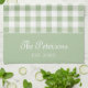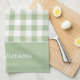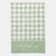 Modern Rustic Sage White Gingham Family Name Tea Towel