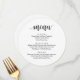 Modern Rustic Black and White, Round Plate shapes, Wedding elopement Dinner Menu. A perfect bar menu for your big day. You can change the script font colours and change the menu contents and fonts to meet your needs.