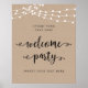 Modern Rustic, Wedding Rehearsal Dinner Welcome Poster, in black script, brown kraft, string lights themed.