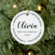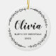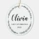 Custom-designed baby's first Christmas ornament featuring modern rustic black and white wreath with your personalized name, year, and photo.
