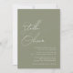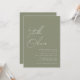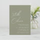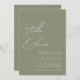 Modern elegant minimal and simple sage green calligraphy script names in modern typography wedding invitation with QR code in the back of the invite.