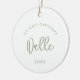 Modern Sage Font Baby's First Christmas Photo Ceramic Ornament