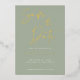 Modern Sage Green Gold Foil Calligraphy Script Wedding Save the Date Card with real rose gold foil. Change foil colour to another colour if you like. Background colour can also be changed.