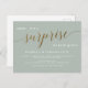Modern Sage & Gold Script Surprise Birthday Party Invitation Postcard