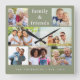 Bring nature-inspired elegance to your home with this sage green photo collage wall clock. With space for seven of your favorite photos, the clock can be personalized with your family name and established year. At the top are the words 'family and friends' in a classic serif font. The soft green background co-ordinates with various decorative styles, from rustic farmhouse to botanical chic. Simply click the "Personalize" button and add your photos and text to create a unique keepsake for the home. Ideal for birthdays, housewarmings or Mother's Day.