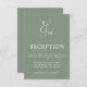 This simple modern minimalist sage green wedding reception enclosure card features an elegant script ampersand with the monogram initials of the bride and groom. Find matching products in the collection, or contact me through Zazzle chat for additional products or other colorways.