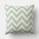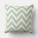 Stylish and chic square accent pillow design features a bold chevron striped pattern of white and soft sage green colours.
