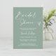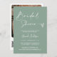 This simple modern and elegant bridal shower invitation card exudes sophistication and beauty features a stunning and beautiful handwritten script calligraphy font and heart paired with a classic serif font for a truly timeless look on a sage green background. It's perfect for your wedding theme! Customise the bride's name and party details and replace the photo with yours, your QR Code, wedding website URL, and other gift registry information to give your this invitation card a nice personal touch. Please note: The "Bridal Shower" wording and heart cannot be edited, changed, or deleted. You can customise and personalise the invitation to fit your needs.