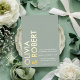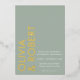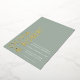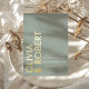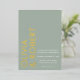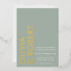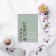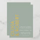 A simple modern wedding invitation featuring bold typography gold foil names, sage green colour and minimalist design.